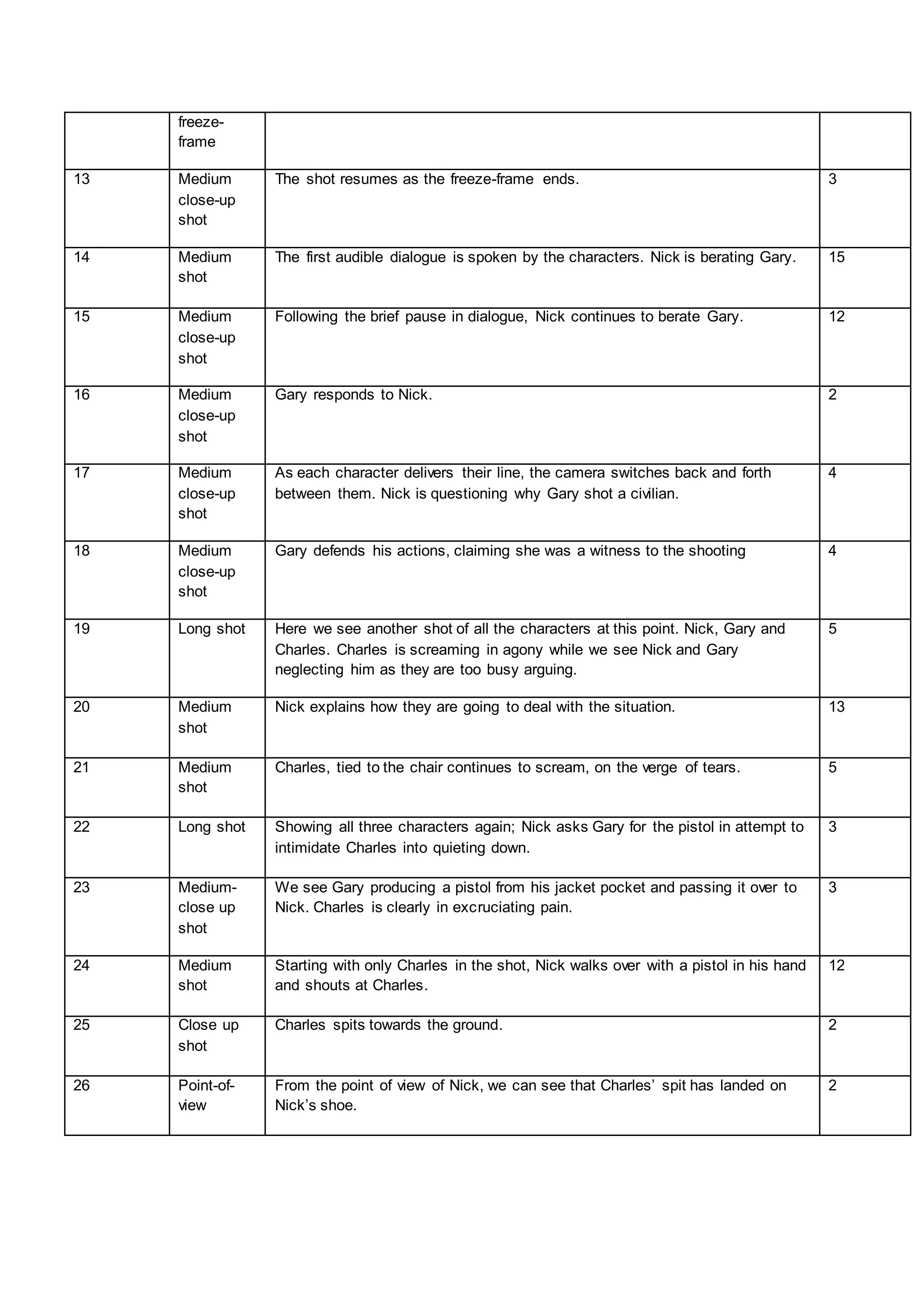 This shooting script summary outlines a violent confrontation scene between several characters: