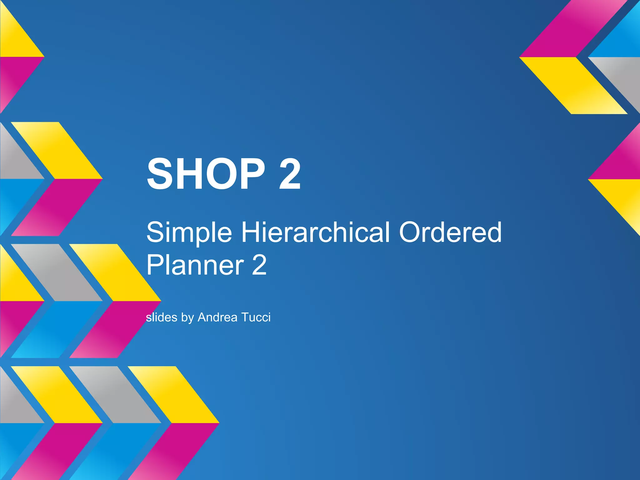 SHOP 2 is a hierarchical task network (HTN) planner developed in LISP that was awarded for its performance in the 2002 international planning competition. It improves upon SHOP by allowing partially ordered tasks and subtasks, and supports many PDDL features. SHOP 2 decomposes complex tasks into subtasks through methods until reaching primitive tasks. It has been applied to domains like video games, evacuation planning, evaluating terrorist threats, and automated composition of web services.