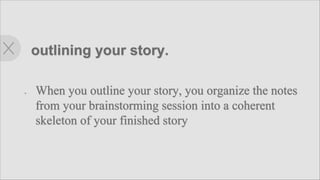 This document provides an overview of key elements of short stories, including that they are works of narrative fiction written in prose and focus on a single incident or series of linked incidents. It notes that short stories contain elements like plot, character development, point of view, and theme, delivered through multiple characters. The document also discusses specific elements like characters, plot, conflict, theme, setting, and endings. It provides an example of a short story by Jack London called "To Build a Fire" that follows a man's failed attempt to build a fire in heavy snow and his subsequent death.