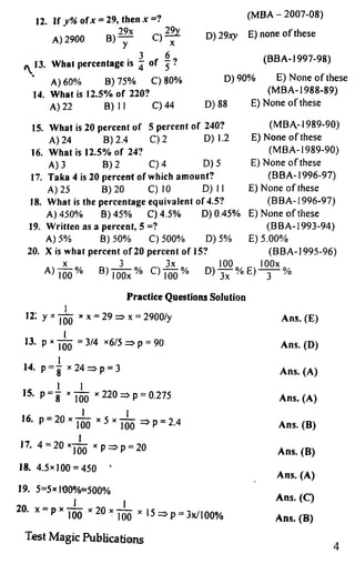 The document contains a table of contents for a study book on mathematics. It lists 26 chapters covering various math topics, including percentage, profit and loss, interest, mixture, speed, unitary method, fractions, geometry, angles, triangles, rectangles, squares, parallelograms, trapezoids, circles, and coordinate geometry. It also provides links to the author's Facebook page and websites to find updated e-books and other materials.