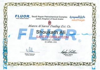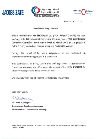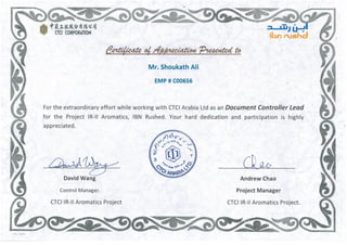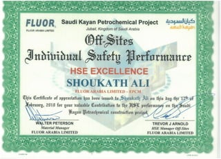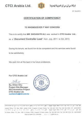 Shoukath Ali is seeking a challenging position where he can utilize his education and experience. He has over 10 years of experience working in document control roles for oil, gas, and petrochemical companies in India and Saudi Arabia. He is proficient in various document management systems and Microsoft Office applications. His experience includes tasks like document registration, distribution, updating status logs, and ensuring document traceability. He is looking to secure an opportunity where he can contribute value to an organization through his abilities.