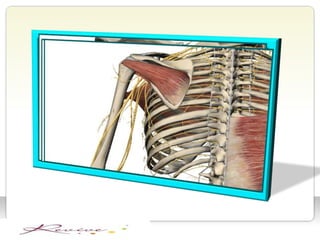 The shoulder girdle consists of three bones - the clavicle, scapula, and humerus. It contains four joints - the sternoclavicular, acromioclavicular, scapulothoracic, and glenohumeral joints. The glenohumeral joint is a ball and socket joint that allows for great mobility but also instability. During shoulder movements, the humerus, scapula, and clavicle move in coordinated patterns to provide both mobility and stability.