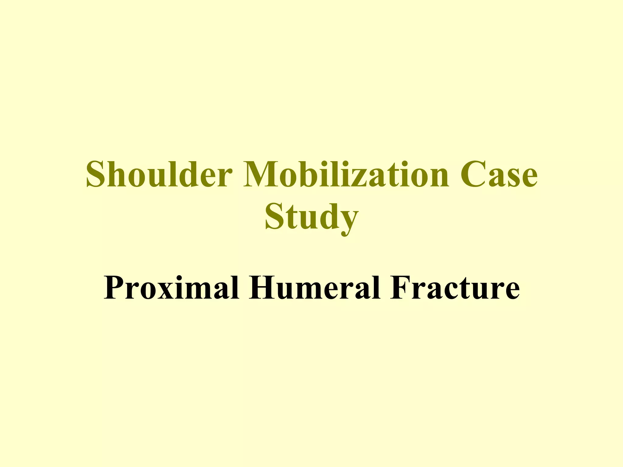 This case study describes the physical therapy treatment of a 61-year-old male with a partially healed proximal humeral fracture and rotator cuff tear in his right shoulder. He had limited range of motion and pain with movement after 8 weeks of immobilization. The treatment plan involved joint mobilization techniques to increase shoulder range of motion, as well as strengthening exercises to improve muscular strength. The goals were to restore normal motion and strength without exacerbating pain.