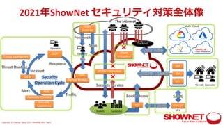 ShowNet2021 展示会場内説明スライド(parapara) セキュリティ ゼロトラストモデルによる次世代セキュリティアーキテクチャ ・守るべきリソース保護のための継続的な検証と評価 ・リモートワークとマルチクラウド環境に一貫した動的セキュリティポリシの適用 ・一元的な認証認可によるリソースの保護 ・スレットインテリジェンスを活用したプロアクティブな脅威検出