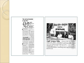 Yogkshem Foundation is a non-profit organization established to spread legal awareness in society. It conducts seminars and village council meetings to educate people, especially in rural areas, about their legal rights and entitlements. The organization collects funds through donations from lawyers, judges, and families. A survey of seminar participants found that the events effectively taught attendees about laws regarding women's rights, family issues, and legal recourses. Participants felt the booklets provided a good reference. The organization is concluded to be doing important and effective work in raising legal awareness.