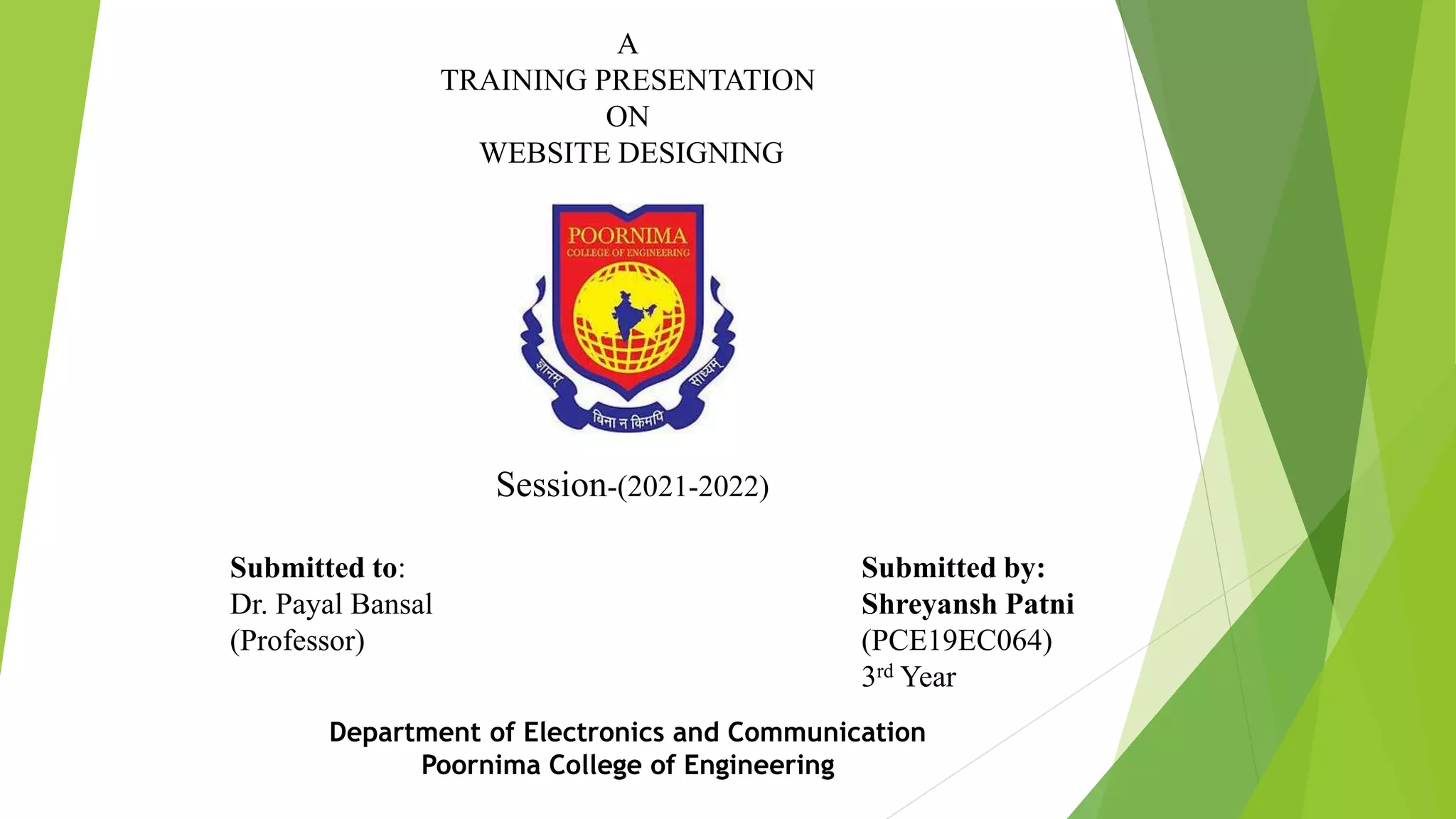 This document provides a summary of a training presentation on website designing. It discusses the training platform Internship Studio, an overview of website designing including HTML, CSS, JavaScript, and the box model. It also describes a project to design an e-commerce website and the future scope of web designing careers. The conclusion states the key learnings from the training on basic concepts and designing a basic website.