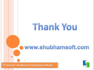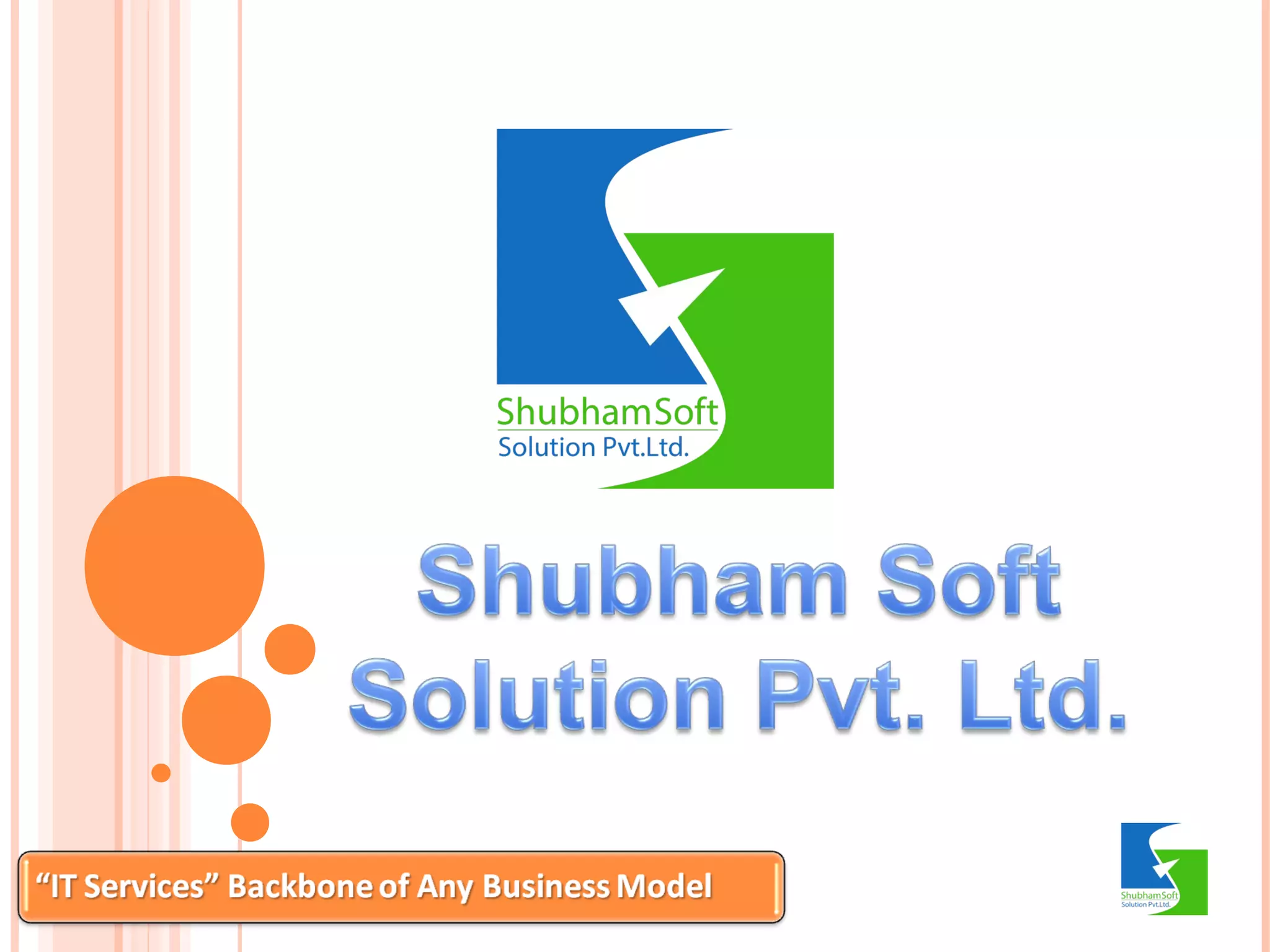 Shubham Soft Solution Pvt. Ltd., established in 2008, is a leading IT company in Delhi NCR offering a comprehensive range of services including web development, SEO, IT consulting, and virtual assistance. The company focuses on cost-effective solutions and client satisfaction, leveraging various technologies to deliver successful projects for diverse clients. They aim to be a respected company by fostering innovation and delivering superior value to customers.
