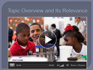 The document discusses research into social media conversations about technology and engineering education in K-12. The research aims to identify where discussions about engineering education occur on social media and pilot a new tool to analyze these discussions. The goal is to build support for focusing K-12 technology education on engineering. Mapping conversations could provide opportunities to inform the public and engage them in important discussions about engineering education policy.