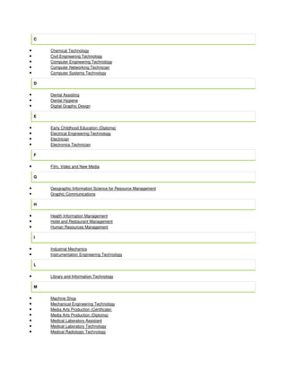 The Saskatchewan Institute of Applied Science and Technology is Saskatchewan's primary public institution for post-secondary technical education and skills training. It offers a variety of diploma and certificate programs in fields like business, engineering, health sciences, and skilled trades. Admission requirements include a minimum 50% average from previous education and meeting English language proficiency standards. The document provides contact information for Dhrron Consultancy, an organization that can provide more details on admission and programs.