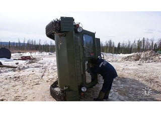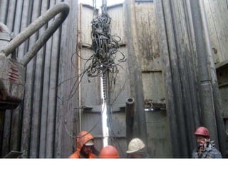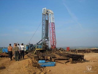 Horizontal drilling involves drilling wells at an angle to access targets located away from the initial wellbore. This technique allows for more efficient extraction of resources located underground or underneath obstacles by drilling horizontally rather than vertically. A German drilling rig from 1959 that used horizontal drilling techniques is still operational today, demonstrating the longevity of effective horizontal drilling equipment designs from over 60 years ago.