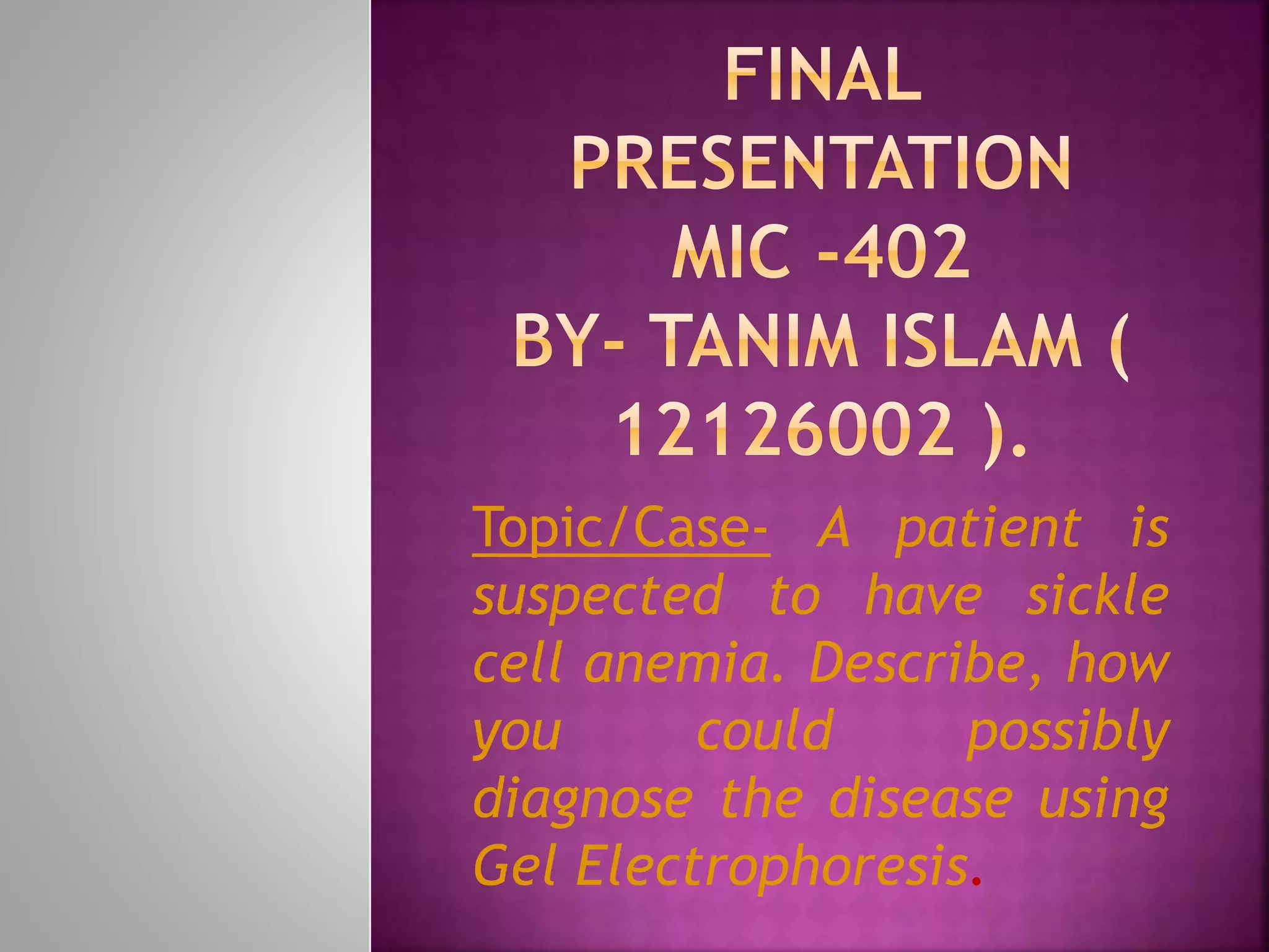 1. Extract DNA from the patient's red blood cells and hemoglobin from blood.