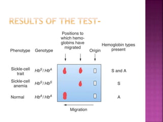 3. Analyze the results: Two bands for DNA indicates normal, one band indicates mutation; Two bands for hemoglobin indicates trait, one band heavier than normal indicates disease.