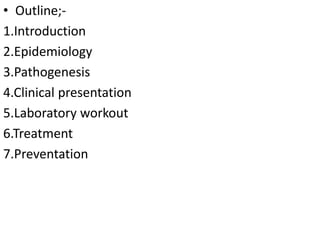 This document provides an overview of sickle cell disease (SCD), including its definition, epidemiology, pathogenesis, clinical presentation, diagnosis, treatment, and counseling. SCD is caused by a genetic mutation resulting in abnormal hemoglobin called HbS. It most commonly presents as painful vasoclusive crises, acute chest syndrome, splenic sequestration, or aplastic crises. Treatment involves management of symptoms, antibiotics, hydroxyurea, blood transfusions, and counseling to enable informed family planning decisions.