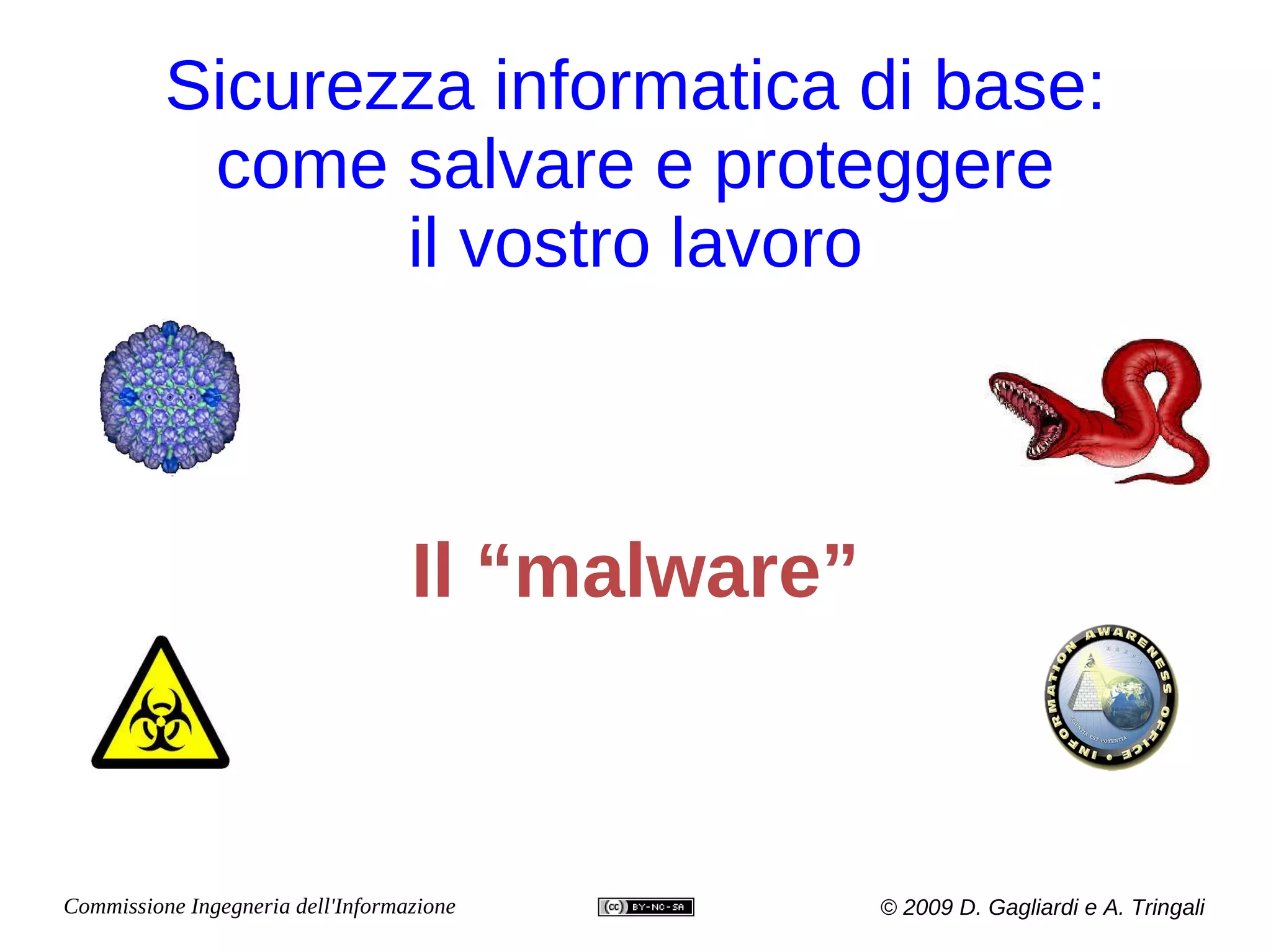 Il documento discute la sicurezza informatica, evidenziando vari tipi di malware come virus, trojan, rootkit e spyware, e le loro modalità di propagazione e danneggiamento dei sistemi. Viene presentata la storia del malware e dei primi antivirus, oltre a suggerimenti per la protezione contro queste minacce, come l'uso di antivirus, firewall e la prudenza nell'uso di applicazioni e password. Infine, viene fatta menzione della crescita esponenziale del malware e l'emergenza di nuove minacce, in particolare nel contesto dei dispositivi mobili.