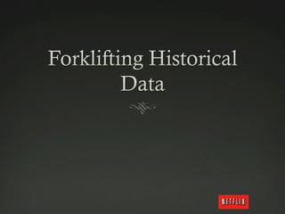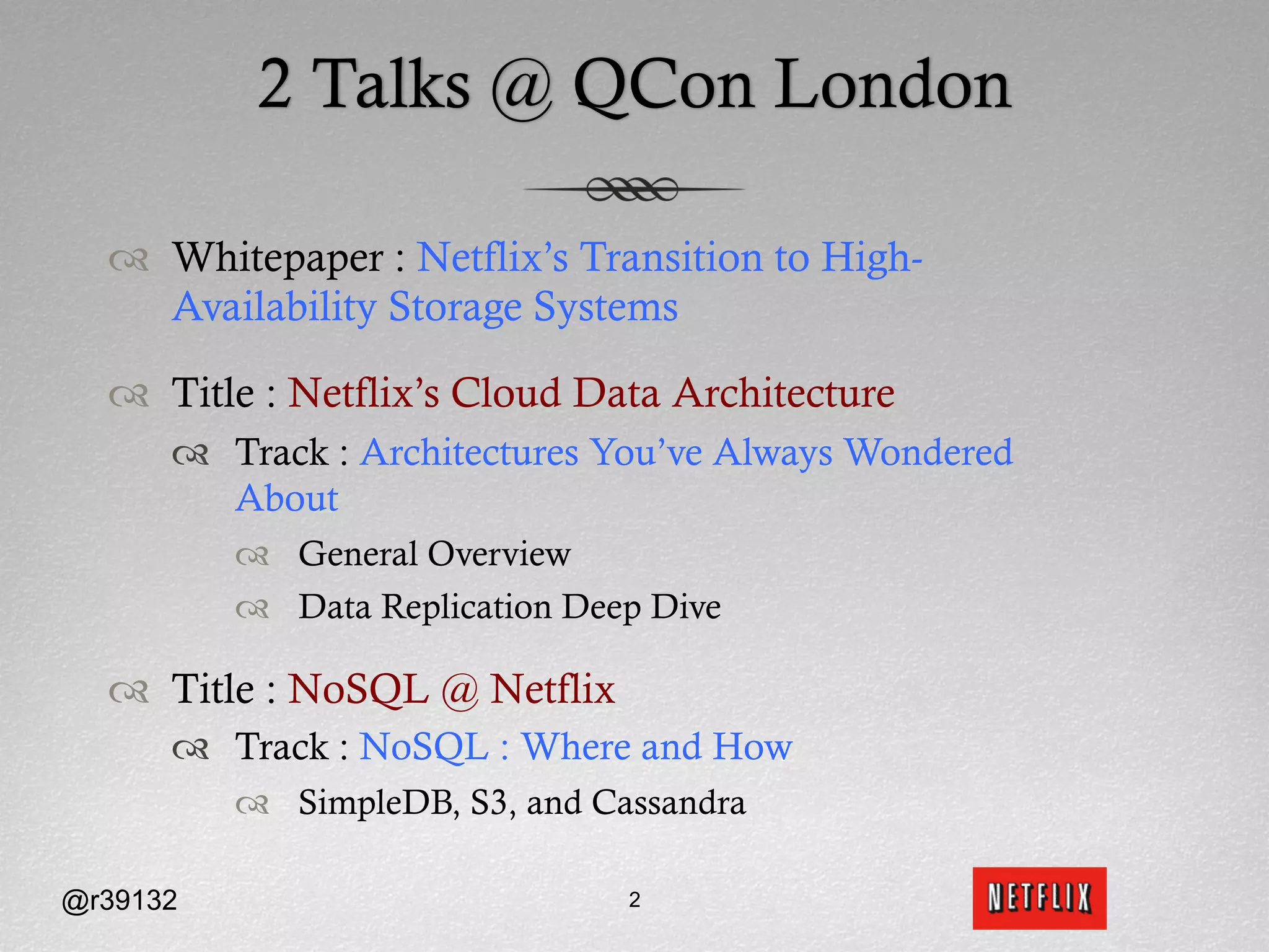 The document discusses Netflix's transition to cloud computing with Amazon Web Services, including how they use various AWS services like SimpleDB, S3, EC2, and ELB. It describes how Netflix built their own platform on top of AWS to provide additional functionality for their applications. The document also covers how Netflix uses SimpleDB and S3 for data persistence and storage in the cloud.