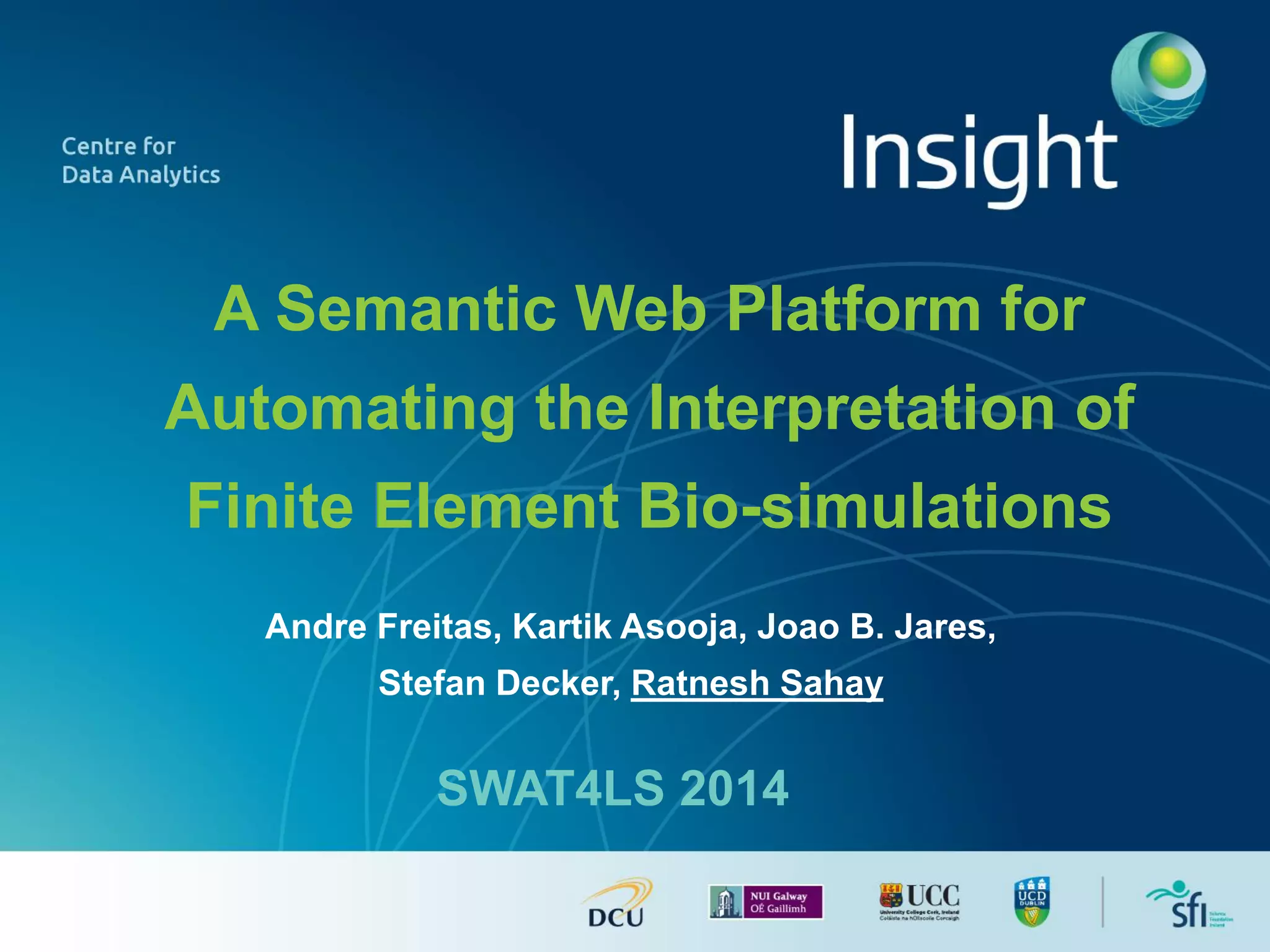 The document discusses a semantic web platform aimed at automating the interpretation of finite element (FE) bio-simulations, focusing on depicting finite element data symbolically. It highlights the challenges in representing complex FE concepts while performing efficient data analysis and feature extraction. Future directions include better integration with conceptual models and utilizing heuristic methods to enhance simulation configuration efficiency.