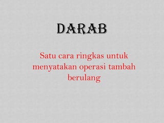 Dokumen ini membahas tentang operasi perkalian (darab) dan memberikan contoh soal latihan darab sederhana beserta penyelesaiannya.