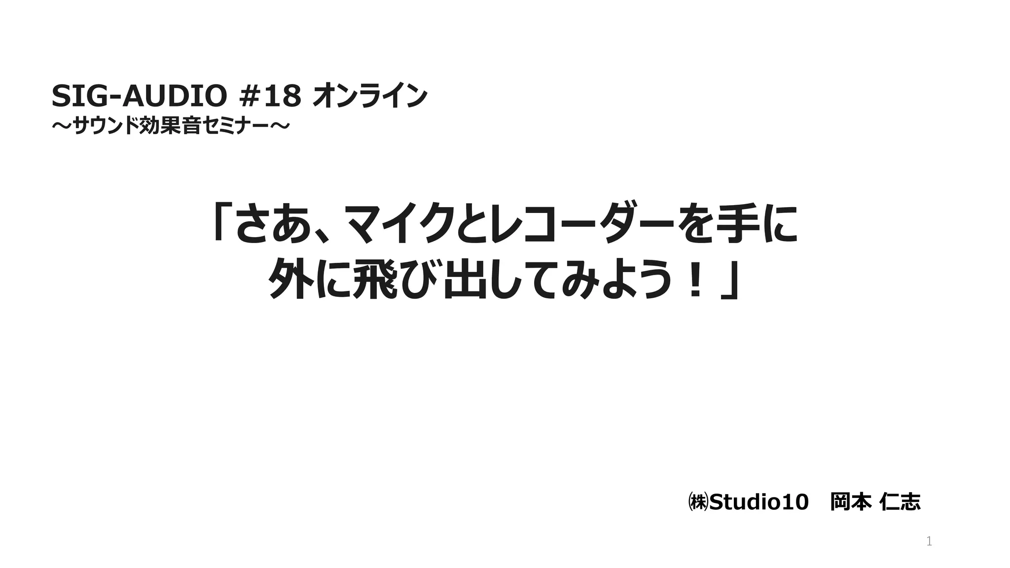SIG-Audio18セミナー1「さあ、マイクとレコーダーを手に外に飛び出してみよう!」㈱Studio10 岡本 仁志