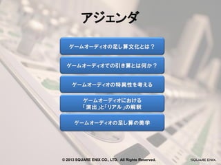 SIG-Audio#9 FINAL FANTASY XIII シリーズの音響制作から考える多様化ニーズへの対応 PPT