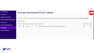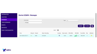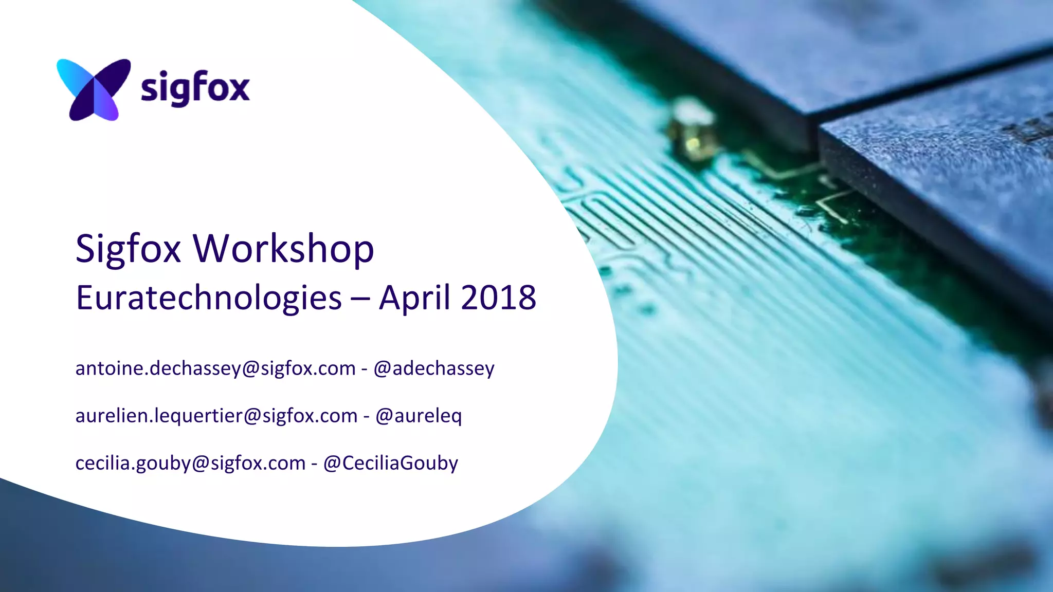 The document summarizes a Sigfox workshop held at Euratechnologies in April 2018. It provides an overview of Sigfox, its global low power wide area network, and how it can be used for applications like parking management, asset tracking, home alarm systems, and stolen vehicle recovery. It also discusses Sigfox's ultra narrow band technology, random access protocol, and other technical aspects. Finally, it demonstrates how to get started with the Arduino MKRFOX1200 kit for prototyping Sigfox devices and transmitting messages over the network.