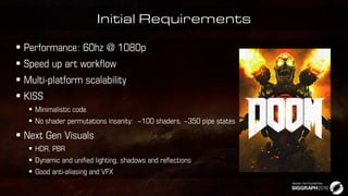 The document details the requirements and processes involved in clustered lighting and shading within a graphics framework, particularly focusing on data structures and pseudocode for optimizing light calculations and rendering. It discusses various techniques for managing light behavior, particle lighting, and post-processing optimizations. The conclusion hints at future developments and includes references and hiring information.