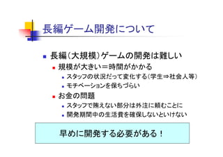 Similar to ABYSS開発の過程に見る同人ゲーム制作について-長編ゲーム開発におけるマネジメント-