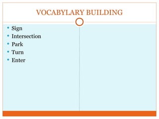 The document lists various traffic signs and their meanings in Indonesian including no turning, no parking, go left/right, no entering, no smoking, be careful, no touching, no photos, ladder, lift, smoking area, fire extinguisher, hospital, electrical hazard, restaurant, public phone, woman, flammable, narrow bridge, slippery road, heavy trucks, underpass ahead, maximum height, enter, wear seatbelt, school crossing, road work, railway crossing, and steep hill. It then asks to write the meanings of the traffic signs below, which are not included.