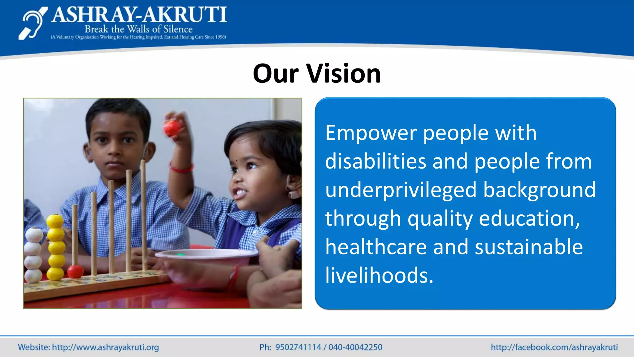 Ashray Akruti is a non-profit organization aimed at empowering people with disabilities, particularly focusing on hearing-impaired children, through education, healthcare, and skills training. The organization has successfully integrated over 270 hearing-impaired children into mainstream education and conducted numerous cochlear implant surgeries, among other achievements. They also offer sign language training to bridge communication gaps and improve job opportunities for deaf individuals.
