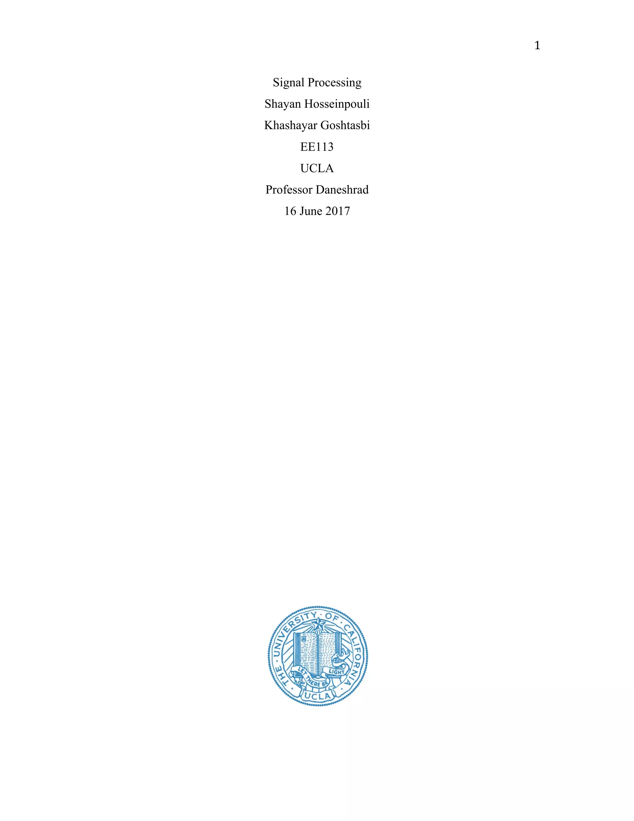 The project aimed to generate and analyze sinusoid signals of 400 Hz and 1500 Hz using MATLAB for hands-on experience with digital signal processing. It involved designing low and high pass filters to eliminate unwanted frequencies, where the low pass filter successfully suppressed the 1500 Hz tone while allowing the 400 Hz tone to pass. The results were validated through the application of Fast Fourier Transform (FFT) and frequency response analysis, demonstrating the effectiveness of the designed filters.