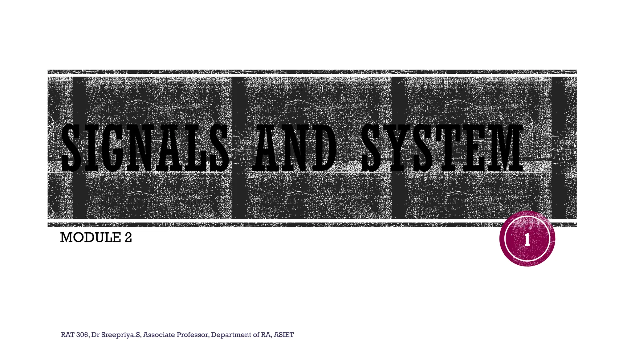 The document outlines the syllabus for a course on signals and systems taught by Dr. Sreepriya S. at ASIET, covering topics such as frequency domain representation, Fourier series and transforms, and analysis of LTI systems. Key concepts include sampling theorems, transfer functions, and properties of Fourier representations for periodic and non-periodic signals. Additional details on Dirichlet's conditions for Fourier series and their graphical representations are also provided.