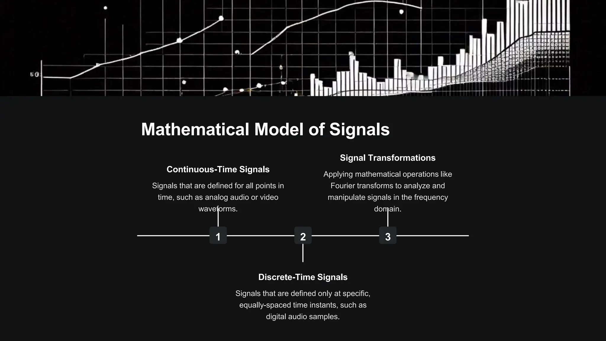The document provides an introduction to signals, covering their types, transformations, and classifications. It explains mathematical models such as Fourier and Laplace transforms, as well as filter types like passive and active filters. Applications in audio, communications, and signal processing are highlighted, detailing how modulated signals, filtering techniques, and frequency analysis are essential for effective signal design and analysis.