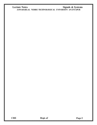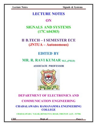 This document contains lecture notes on signals and systems for a course at Chadalawada Ramanamma Engineering College. It includes: