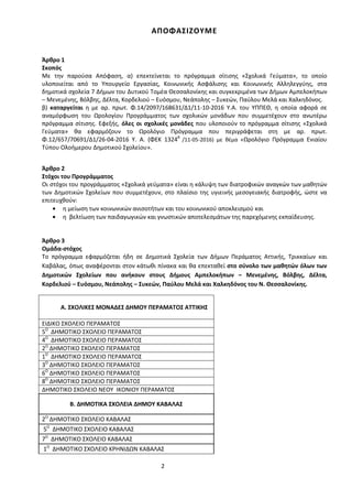 Αλληλεγγύης και του ΥΠΠΕΘ. Πιο συγκεκριμένα, α) καταγράφει τις Σχολικές Μονάδες ανά Δήμο στην