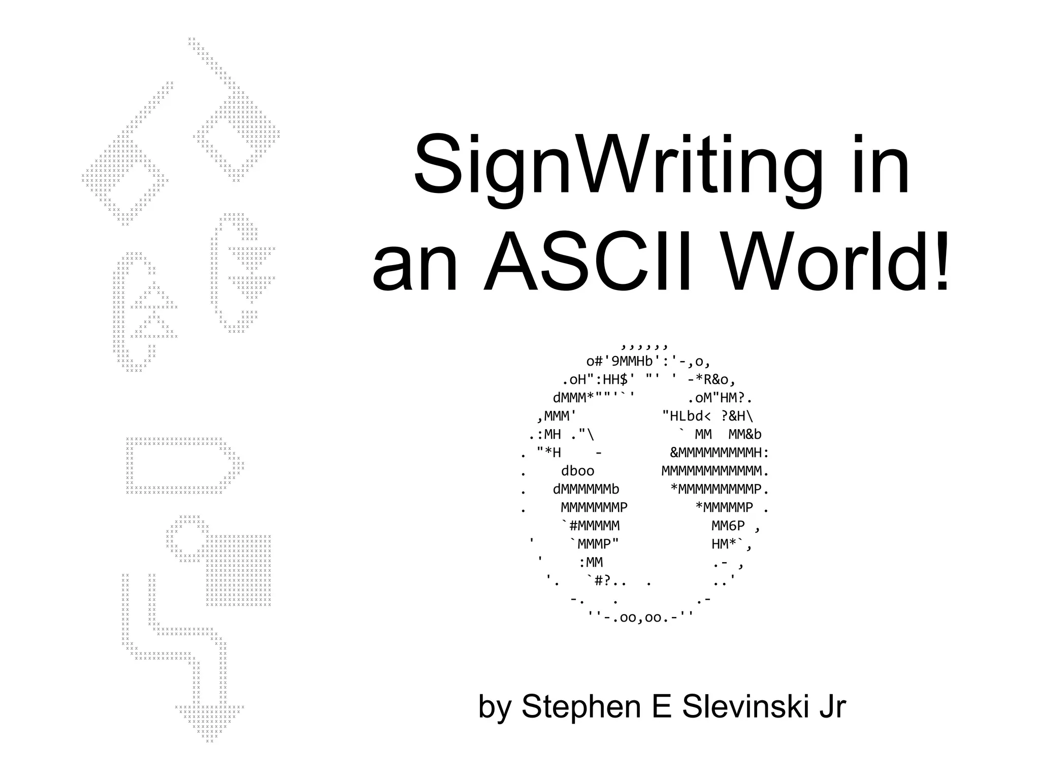 1. The document discusses SignWriting in an ASCII world and describes how SignWriting can be represented using ASCII characters and strings.