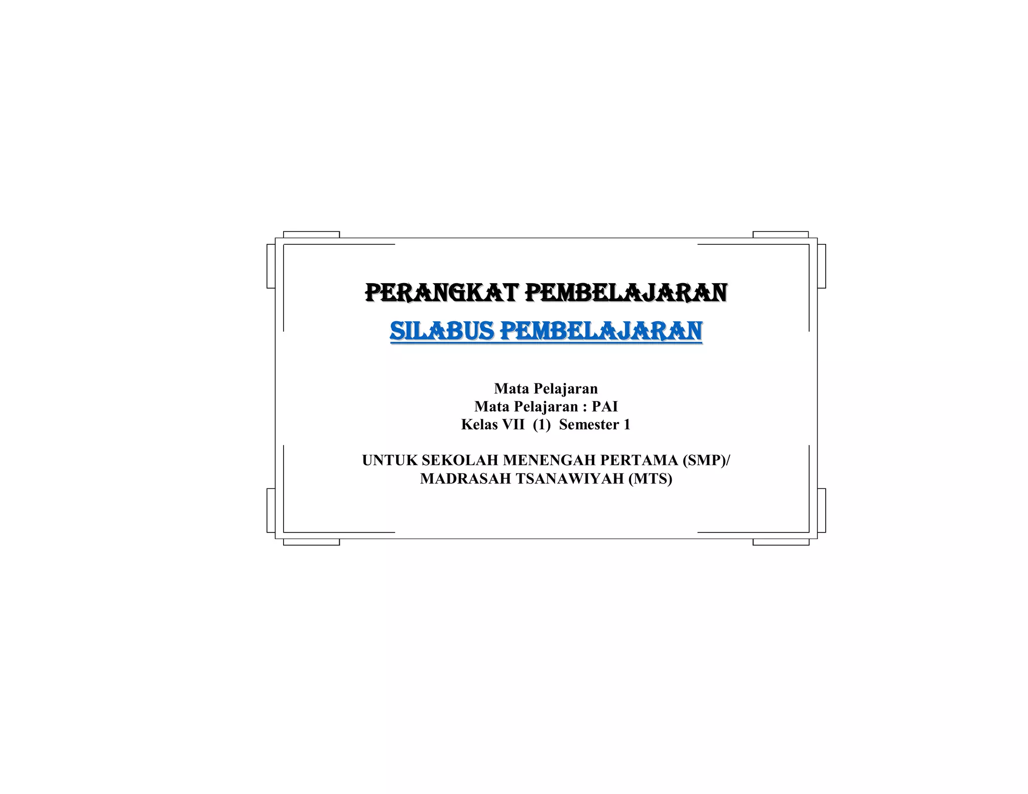 Dokumen ini adalah silabus pembelajaran Pendidikan Agama Islam untuk kelas VII semester 1 di SMP/MTS, mencakup standar kompetensi dan kompetensi dasar terkait hukum bacaan Al-Quran serta pemahaman sifat-sifat Allah. Materi pembelajaran mencakup penerapan hukum bacaan ‘al’ syamsiyah dan ‘al’ qamariyah, meningkatkan keimanan kepada Allah, serta memahami asmaul husna. Penilaian dilakukan melalui berbagai teknik seperti tes lisan, tes tulis, dan praktik unjuk kerja.