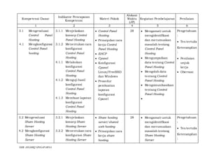 Silabus mata pelajaran Administrasi Sistem Jaringan di SMK ASSABIQ SINGAPARNA mencakup 4 kompetensi dasar yaitu mengevaluasi dan mengkonfigurasi Control Panel Hosting, Share Hosting Server, Virtual Private Server, dan Dedicated Hosting Server. Materi pelajaran meliputi konsep, cara kerja, dan konfigurasi berbagai jenis hosting server untuk 114 jam pelajaran yang akan dievaluasi melalui tes tertulis dan penilaian kinerja praktik.