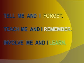 The Silent Way approach focuses on developing learner independence and autonomy through problem-solving activities. It uses visual aids like colored rods, charts, and fidels to teach vocabulary, grammar structures, and pronunciation in a discovery learning manner. The teacher acts as a facilitator and refrains from repetition or direct correction, allowing students to self-correct and learn through inner feedback.