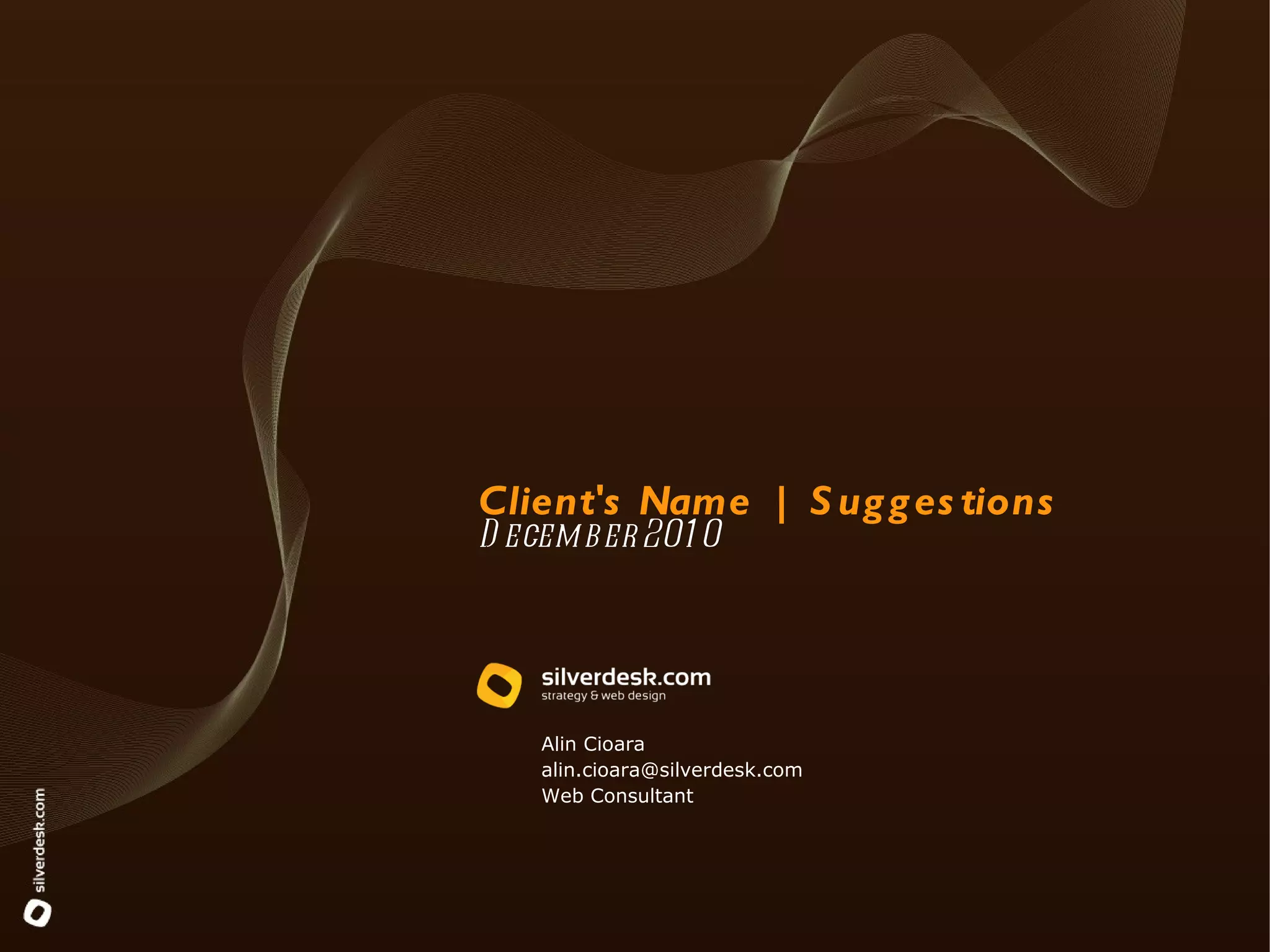 ![Client's Name | Suggestions December 2010 Alin Cioara [email_address] Web Consultant](https://image.slidesharecdn.com/svd-ecommerce02-110213082544-phpapp01/75/Silverdesk-eCommerce-1-2048.jpg)
