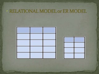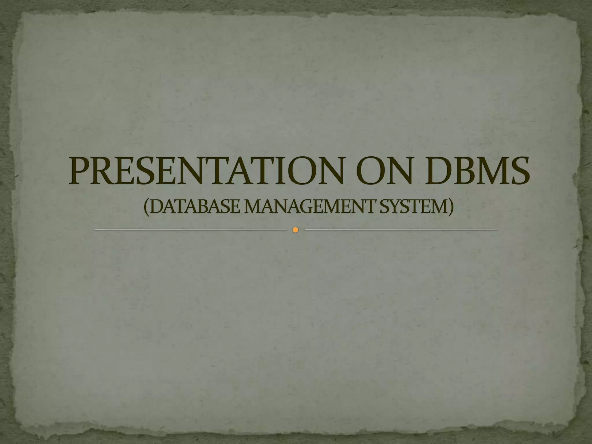A Database Management System (DBMS) is a set of programs that controls the creation and use of databases for an organization. A DBMS represents complex relationships between data, controls data redundancy, and ensures data sharing and security through user-defined rules. It provides benefits like flexibility, fast response to queries, lower training costs, and reduced storage needs. However, implementing a DBMS also involves costs like hardware, software, training, and potential database damage. Common DBMS models include hierarchical and relational models.