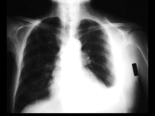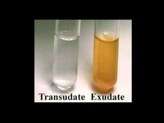 This document discusses pleural effusions, which are collections of fluid in the pleural space between the lungs and chest wall. It covers the etiology, mechanisms, classification as transudates or exudates, clinical presentation, diagnostic evaluation including thoracentesis, and treatment approaches for pleural effusions. Common causes include congestive heart failure, pneumonia, malignancy, and pulmonary embolism. Diagnostic thoracentesis is performed to analyze pleural fluid characteristics and determine the underlying condition. Treatment depends on the cause but may involve drainage procedures, chemotherapy, or sclerosing agents.