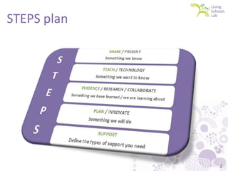 This document discusses the use of Web 2.0 tools for teaching, learning, communicating, and collaborating at Simon Dach Pro-gymnasium in Klaipeda, Lithuania. The school has two IT laboratories and provides computers and internet access in every classroom. It also has an iPad class with 31 iPads. The school uses various presentation, video, community, and creative tools as well as mobile tools to enhance teaching and technology. It shares experiences on websites and collaborates with partners on research projects and seminars to innovate and expand its growing network through the Living Schools Lab project.