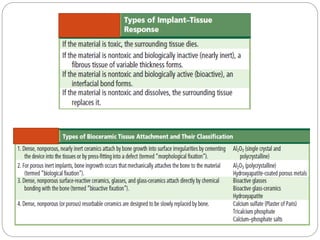 The document discusses the development and applications of bioceramics, particularly bioglass, for hard tissue replacement and drug delivery. It highlights the properties, advantages, and disadvantages of different bioglass compositions, focusing on their rapid tissue bonding and the challenges of mechanical strength. Additionally, it details the methods for drug encapsulation and the controlled release of pharmaceuticals, emphasizing studies on tetracycline and insulin microencapsulation for targeted applications.