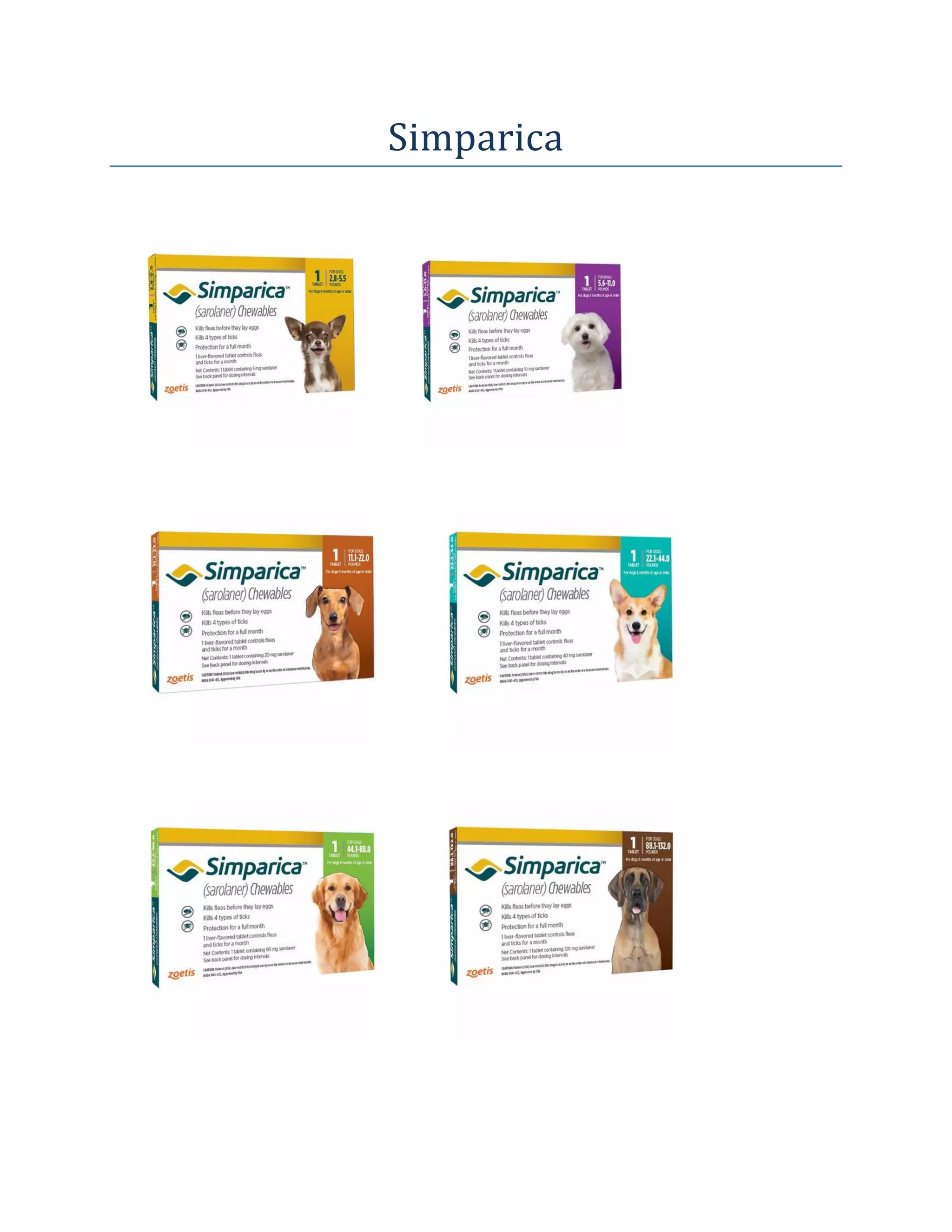 Simparica is a flavored chewable tablet for dogs, providing fast-acting treatment against fleas and ticks, effective for a month after administration. It begins killing fleas within 3 hours and ticks within 8 hours, and is suitable for dogs 6 months or older and weighing more than 2.8 lbs. Monthly treatment can be given directly or mixed with food, and it's important to treat all pets in the household to prevent infestations.
