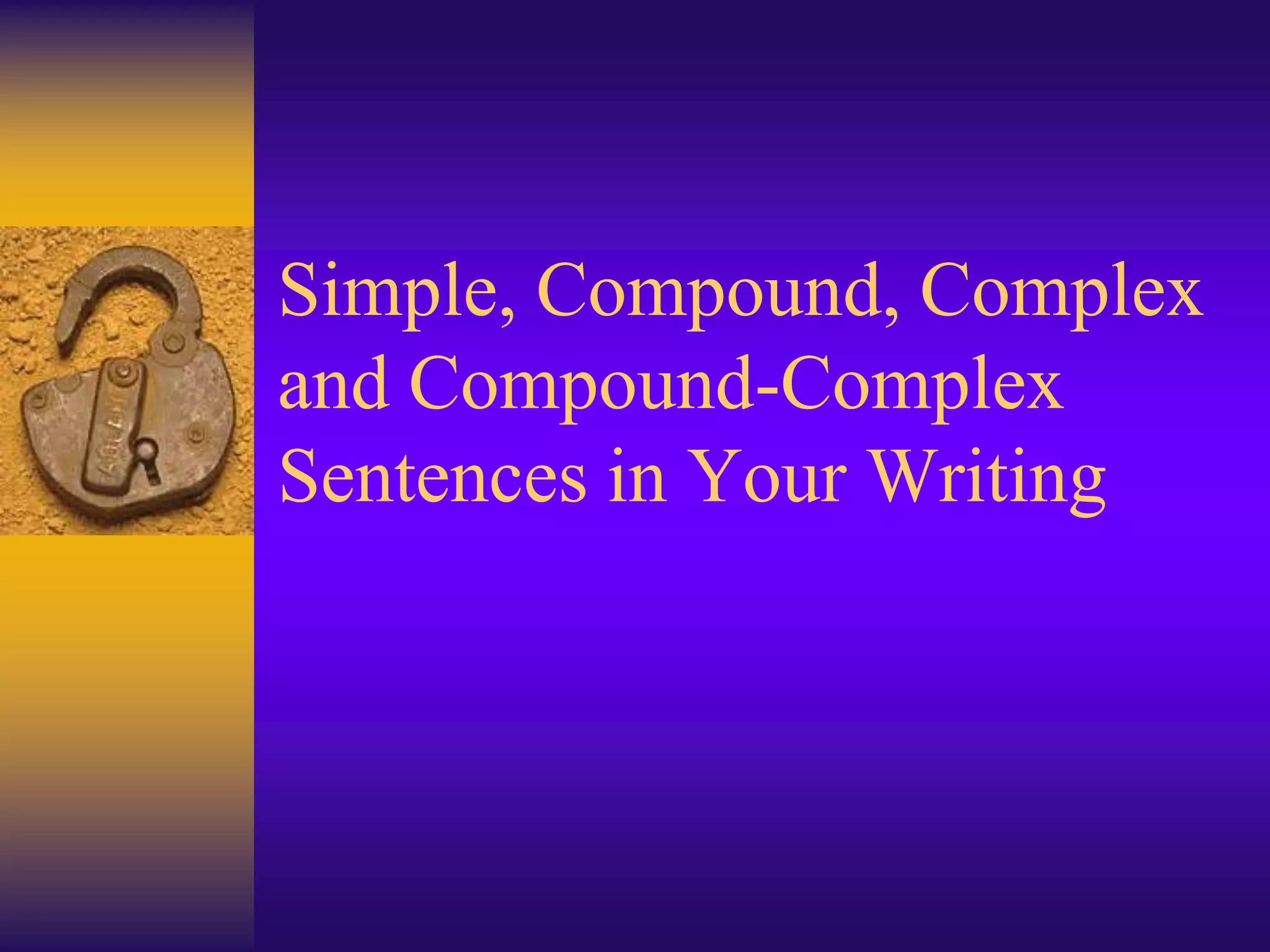 This document defines and provides examples of simple, compound, complex, and compound-complex sentences. It explains that simple sentences contain one independent clause, compound sentences contain two independent clauses joined by a conjunction, complex sentences contain one independent clause and at least one dependent clause, and compound-complex sentences contain at least two independent clauses and at least one dependent clause. The document provides sample sentences to illustrate each type and tests the reader's ability to identify them.