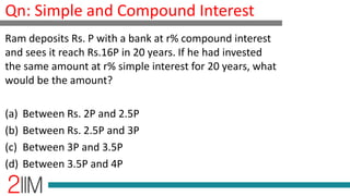 Ram deposits an amount 'p' at a bank with a compound interest rate, which grows to '16p' in 20 years. If the same amount were invested at simple interest, the resulting amount would be between '3.8p' to '4p'. Thus, the correct answer is choice (d).
