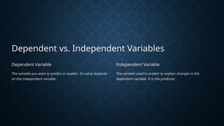 Simple Linear Regression.pptx inSPSS (Theory) 1. 2. Dependent vs. Independent Variables