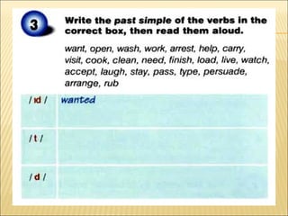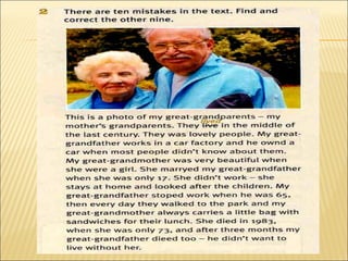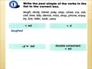 This document discusses using the simple past tense to talk about childhood memories and past experiences such as holidays, birthdays, and first love. It focuses on how to use the simple past form, including irregular verbs, to describe actions and events that happened at a specific time in the past.