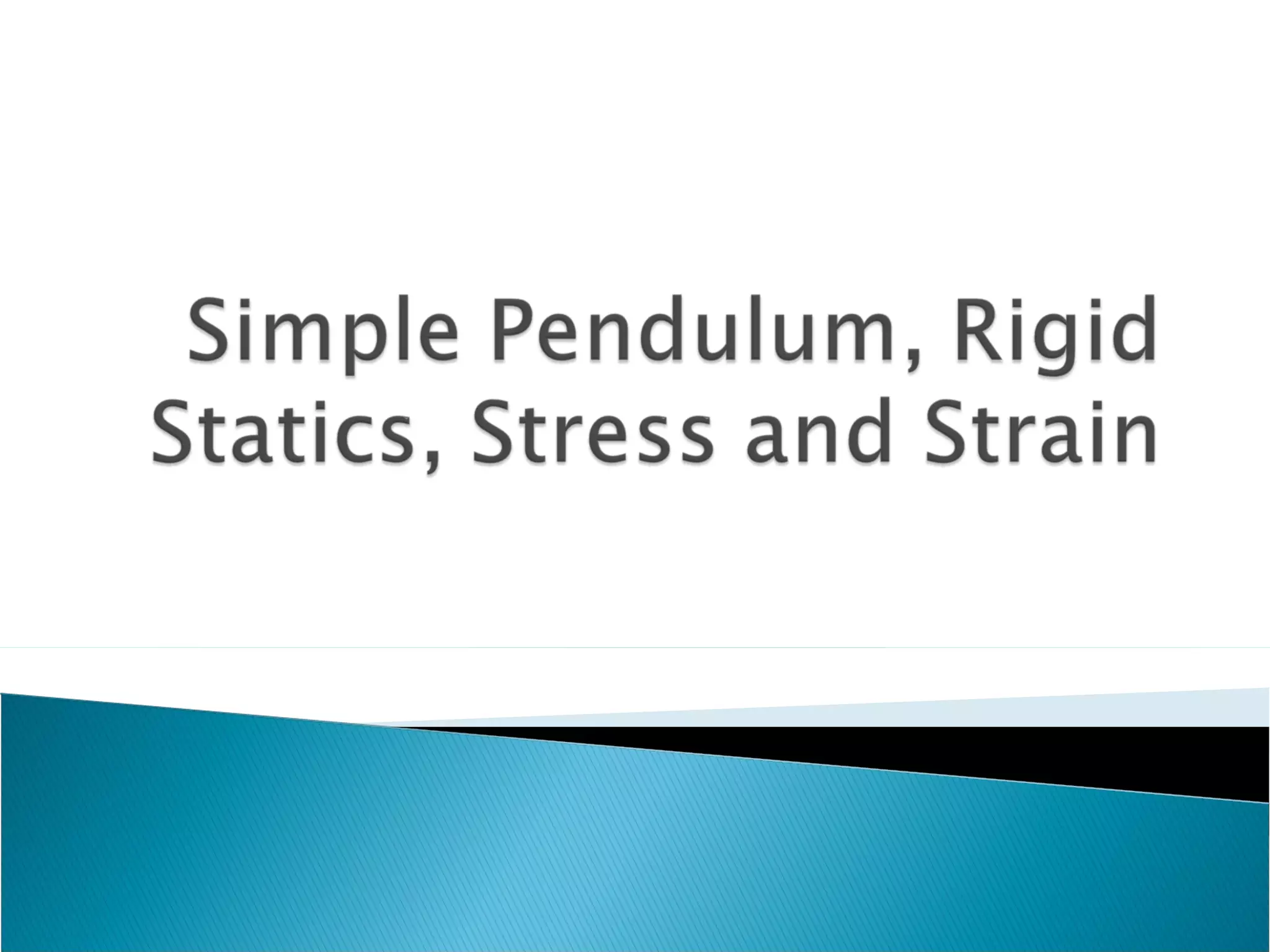 The document discusses rigid bodies and the different types of stress that can be applied to objects. It explains that a rigid body is one that maintains all dimensions regardless of applied forces. The three main types of stress are tensile stress from stretching or compressing, bulk stress from changing volume with surface forces, and shear stress from tangential twisting forces. Tensile stress subjects every part of an object to tension. The amount an object stretches under tensile stress is called tensile strain, which Hooke's law states is directly proportional to the applied stress.