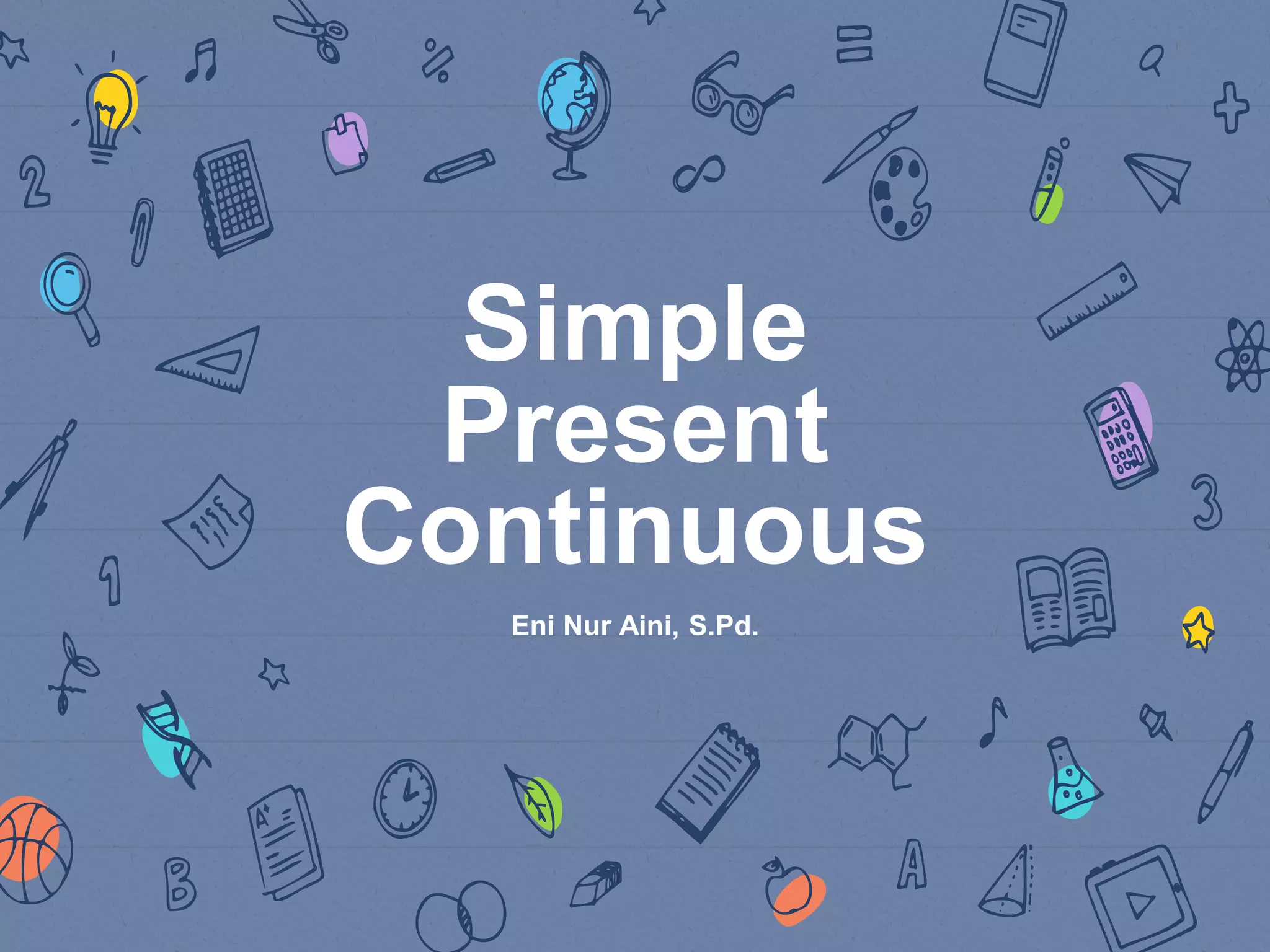 The document discusses the present continuous tense in English. It notes that the present continuous tense is used to talk about ongoing or progressive events happening now. It provides the patterns for positive, negative, and interrogative sentences in the present continuous tense. The patterns include using the appropriate form of to be (is/am/are) plus the verb ending in "-ing" plus any objects or adverbs. Examples are given to illustrate each pattern.