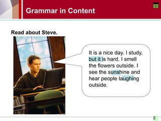 The document provides a comprehensive lesson plan focused on the simple present tense, including its usage, third-person singular forms, and negative constructions. It includes exercises for students to practice affirmative and negative sentences along with pronunciation rules. Additionally, the document emphasizes the importance of proper verb conjugation in the context of grammar and writing.